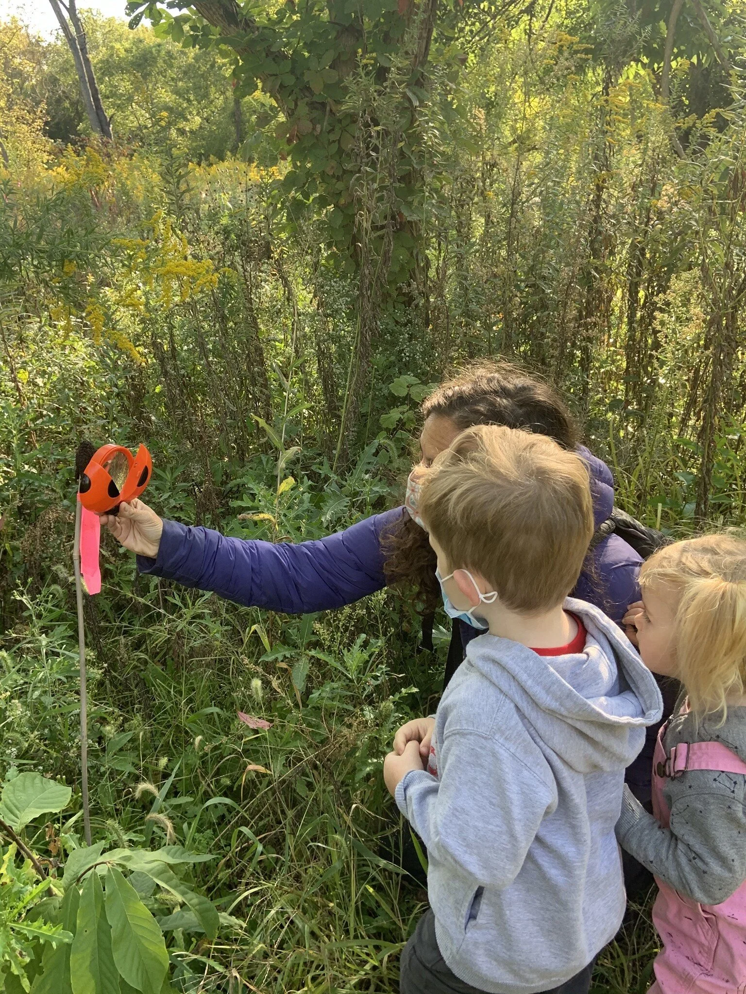 On a beautiful September morning where the sun has yet to reach the floor of the reforestation area on Agraria’s main campus, 4 young children and their parents met. Our first program since COVID-19 changed our social interactions brought eager anticipation from children, parents and educators alike. While adults met and discussed the agenda for the day, the children were tasked with finding a hidden treasure among the maze of native trees and wildflowers. New trees were marked with stakes and bright pink flags, neon and bright in the shade we still found ourselves in.