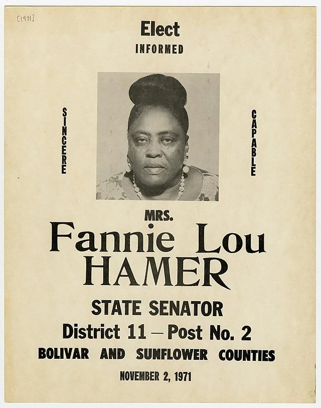Photo of campaign flyer from Hamer’s 1971 run for Congress. Courtesy of Wikimedia Commons.