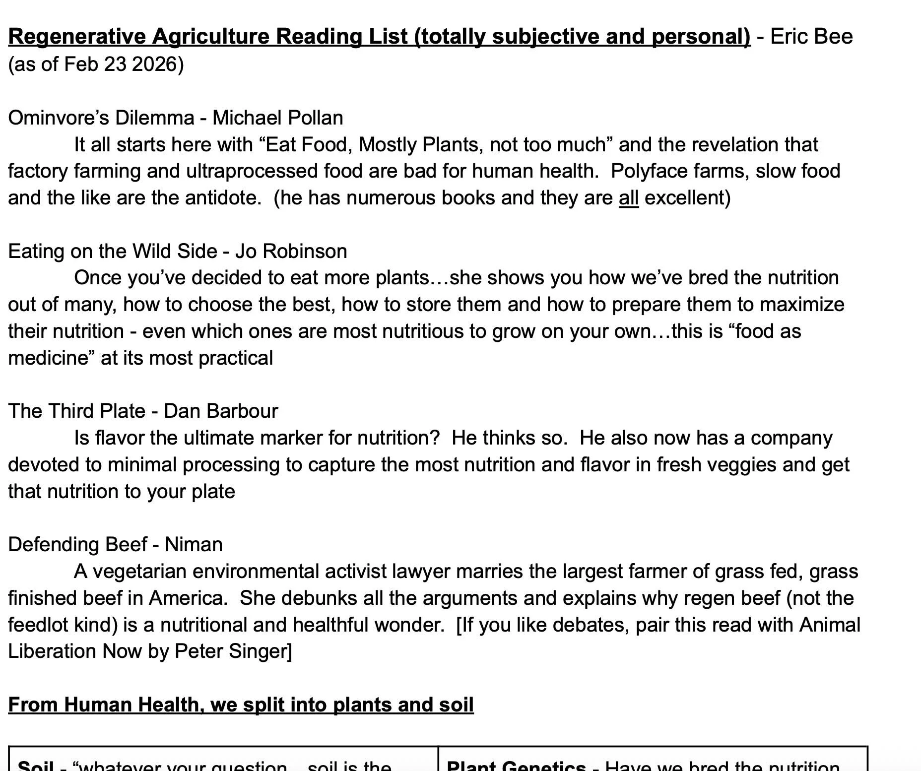 Reading List for Regenerative Agriculture